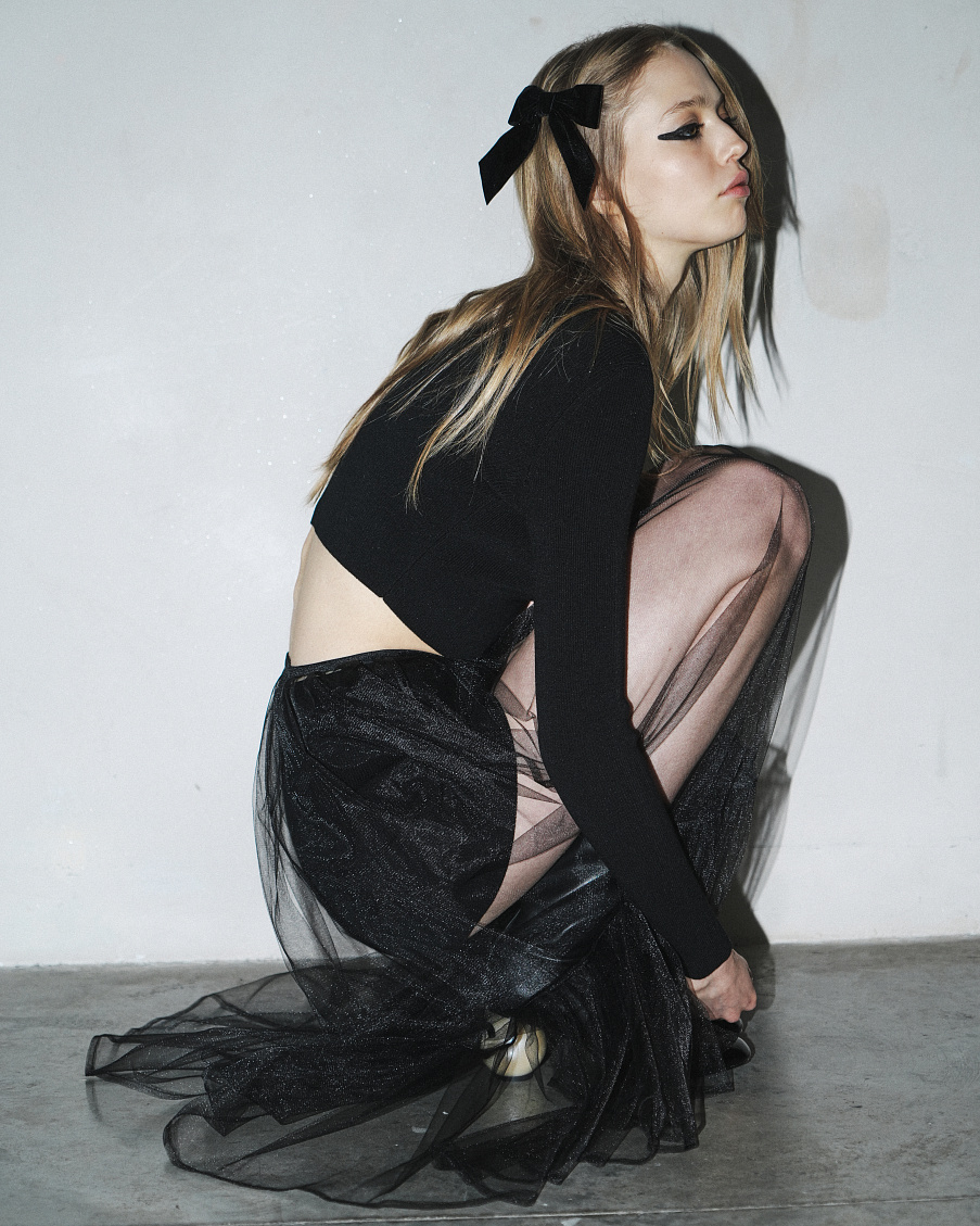 Эта вечерняя юбка миди из фатина, играющая объёмами и слоями, создаёт сказочный и нарядный образ. Сочетайте её с нашим вязанным топом и мини-шортами для создания вечернего образа.